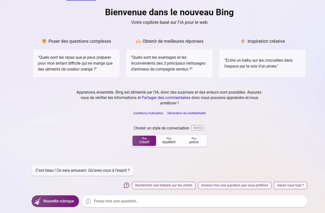💬 Interagir avec Bing AI : mode Conversation